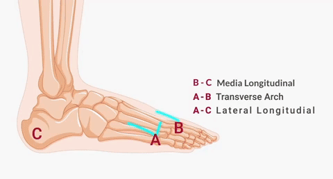 Trojitý oblúk tlaku: rovnomerne rozkladá váhu medzi prsty, klenbu a prednú časť chodidla pre maximálnu stabilitu.